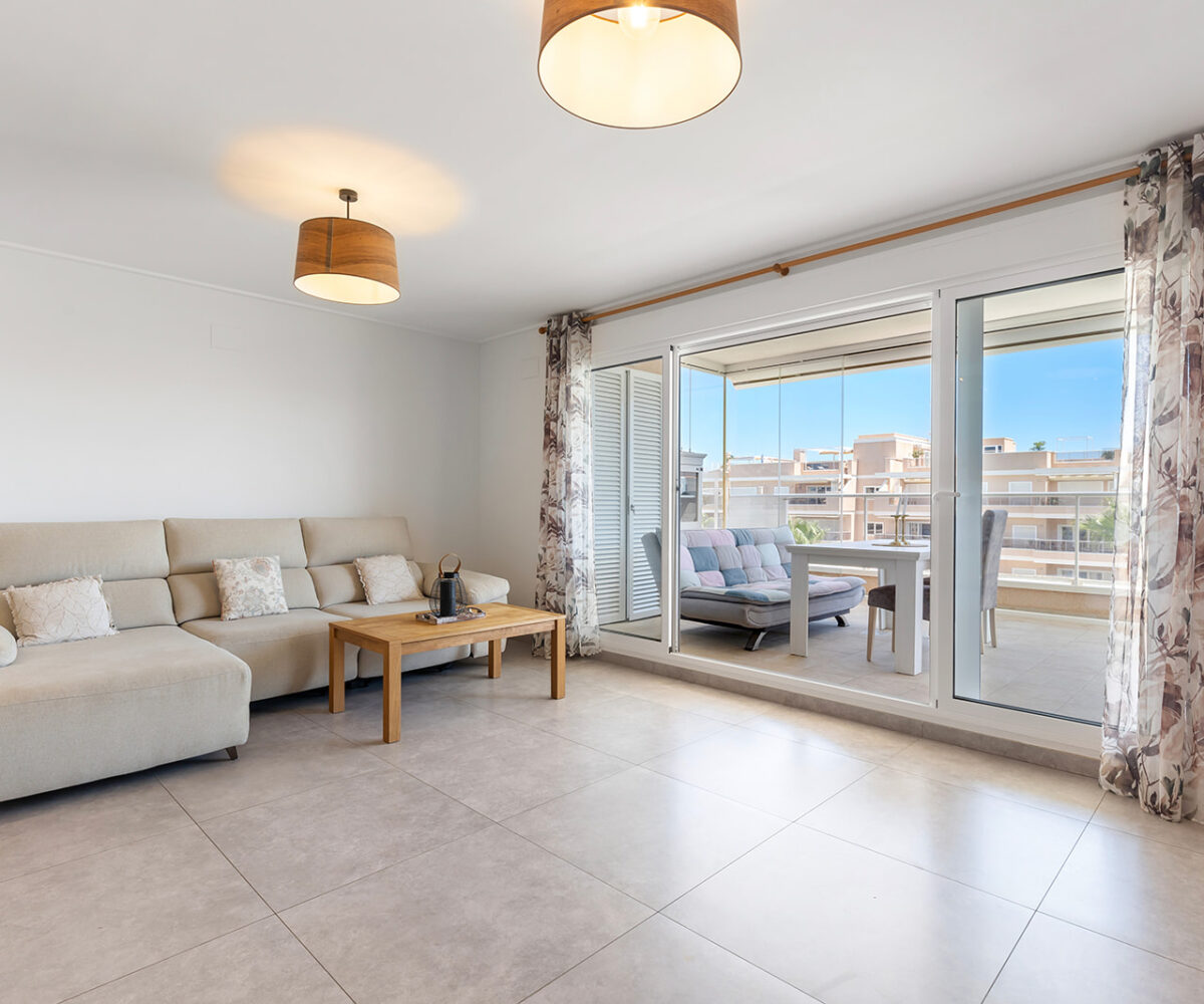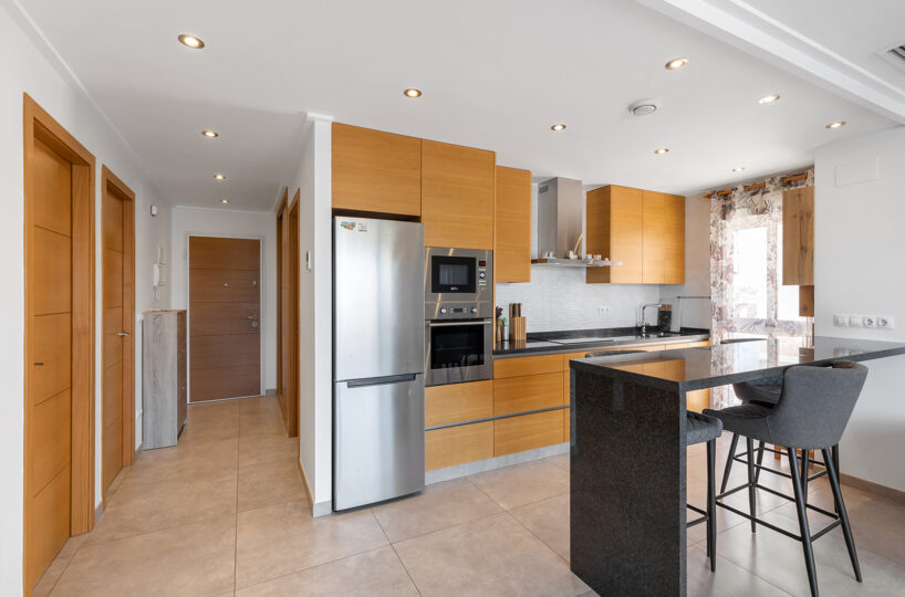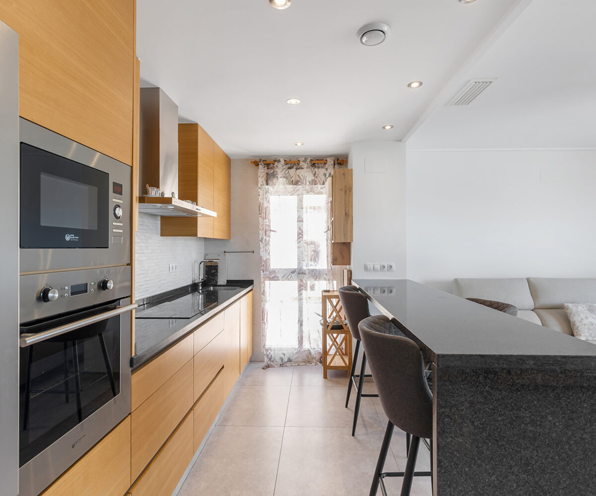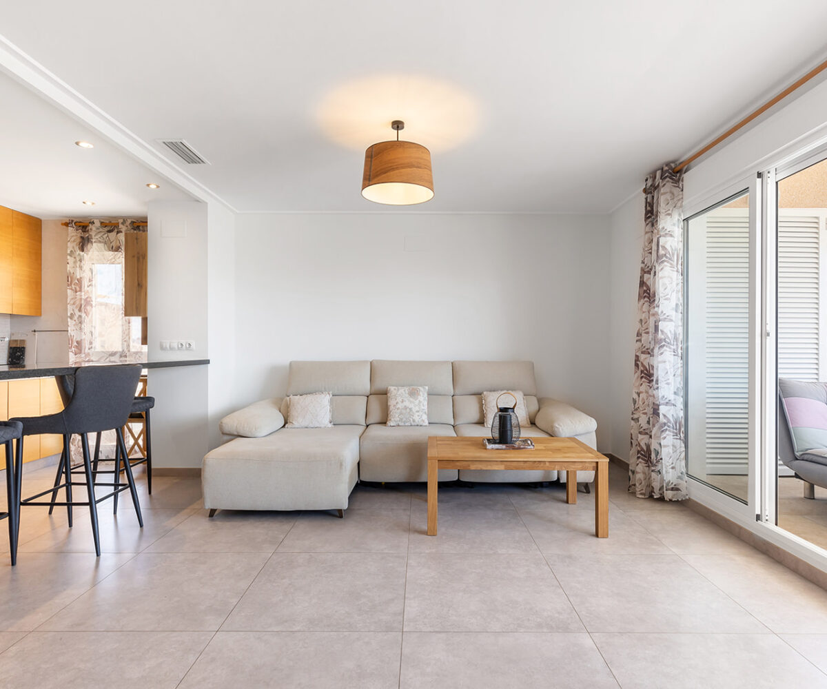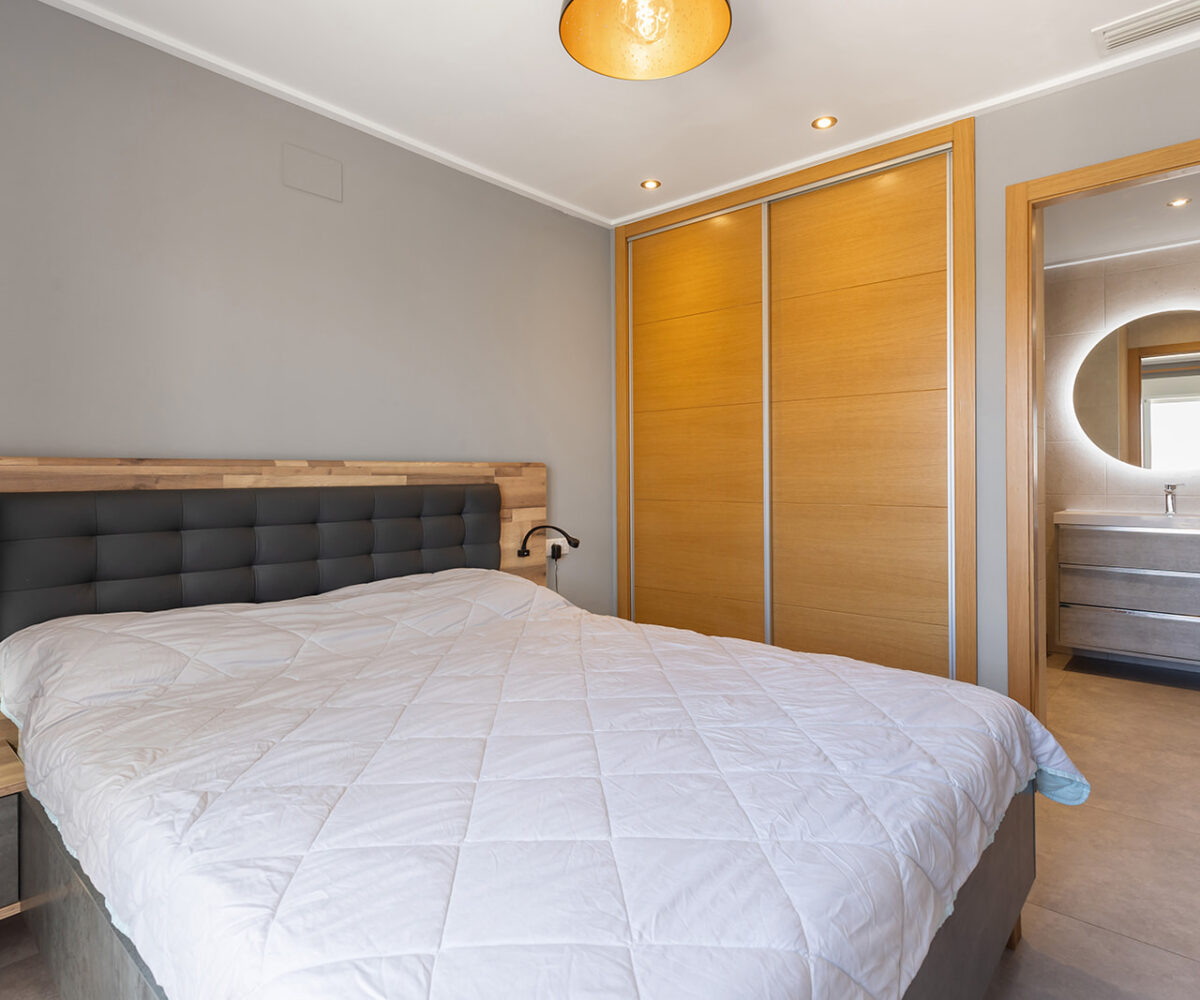 We present this beautiful apartment distributed in three bedrooms, one of them with en-suite bathroom and direct access to the terrace overlooking the common areas of the residential. A spacious living room with kitchenette and direct access to the terrace of 16m2 overlooking the common areas of the residential.