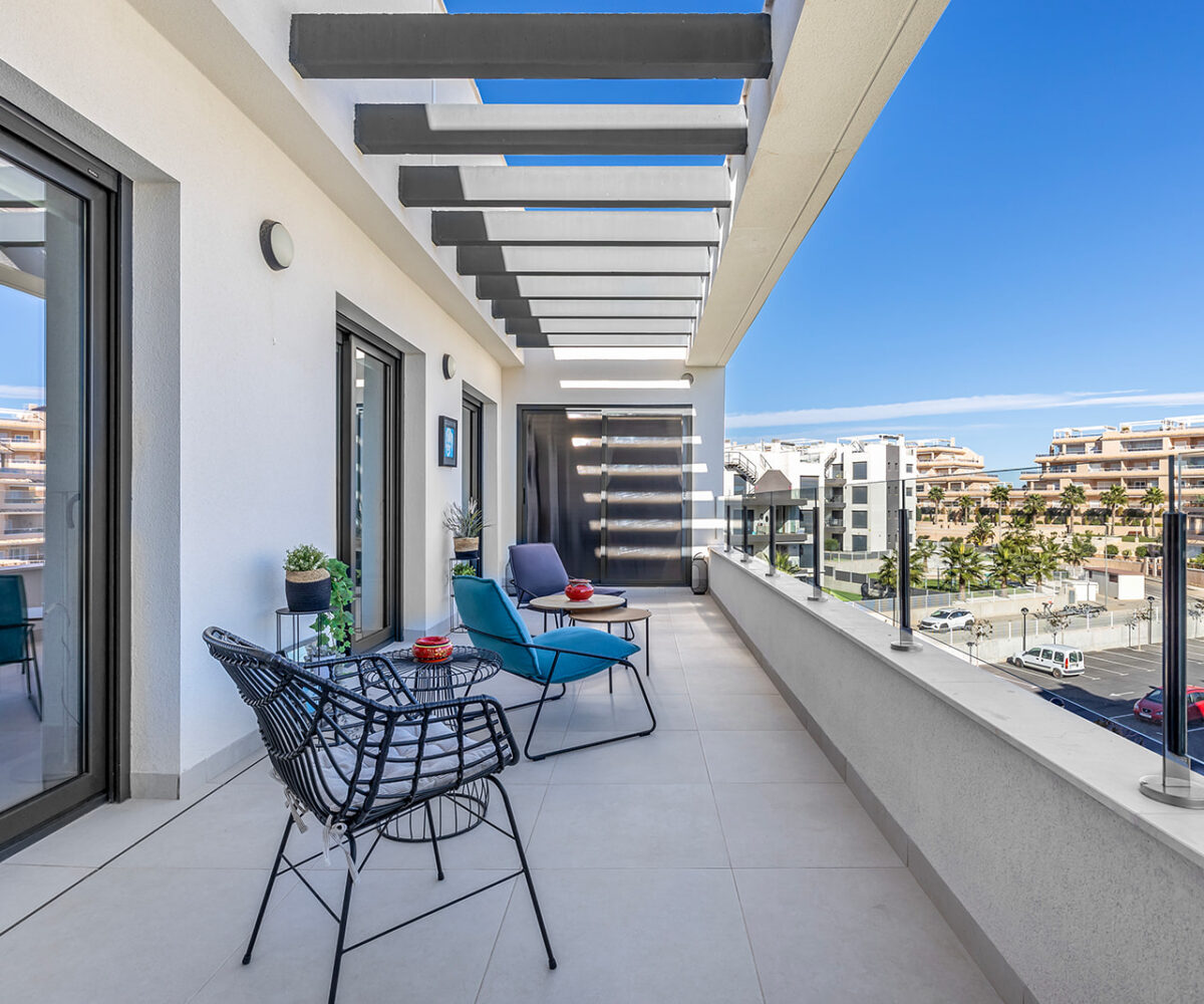 Situado en el hermoso residencial Valentino Golf de Villamartín, este ático dúplex de reciente construcción es una real joya. Con 90 m² interiores, una terraza de 20 m² y un solárium de 80 m² con vistas al mar, este hogar es perfecto para quienes buscan un estilo de vida relajado y sofisticado.