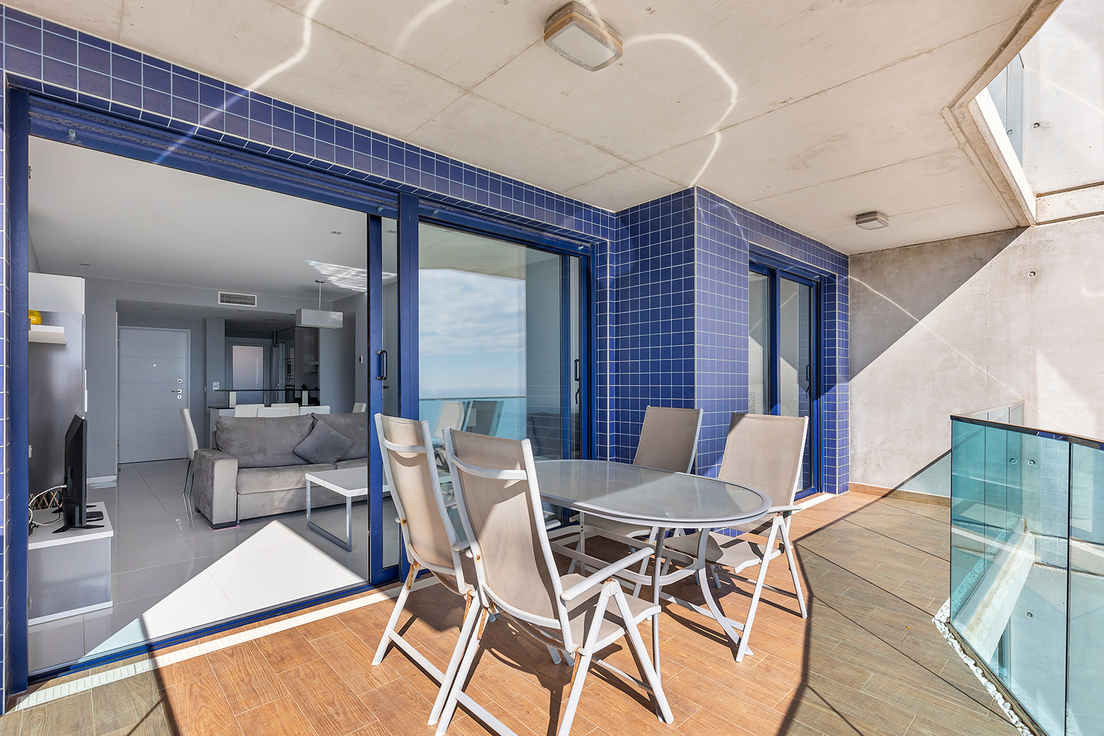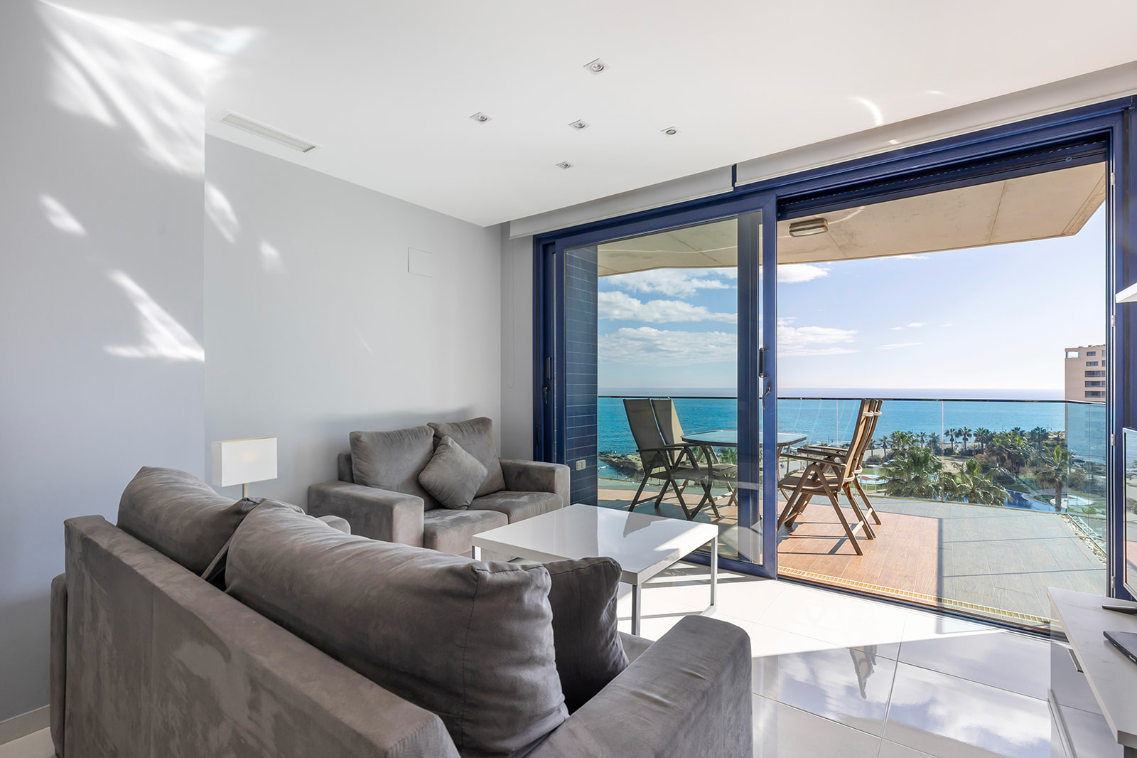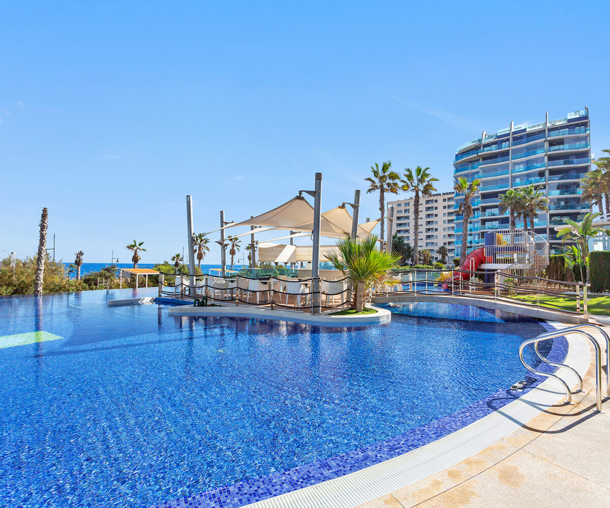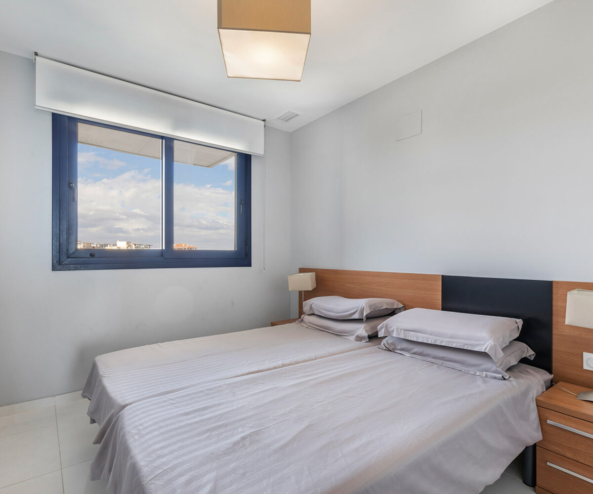 Además, cuenta con una terraza de 16 m², orientada al este, ideal para disfrutar de amaneceres y vistas panorámicas al Mar Mediterráneo. El apartamento se encuentra en la quinta planta y se entrega totalmente amueblado, listo para entrar a vivir.