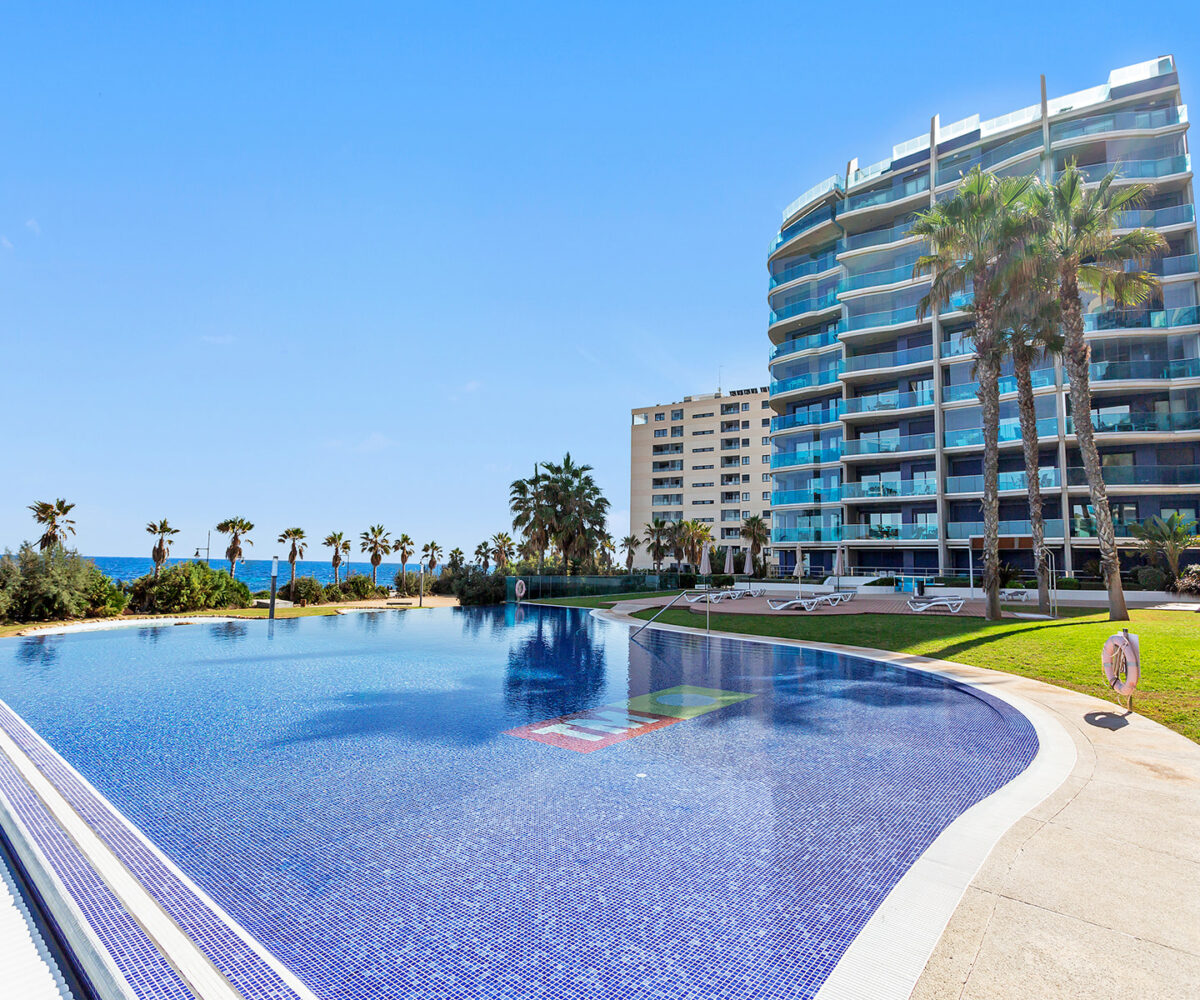 Este elegante apartamento en primera línea se encuentra en Sea Senses, una prestigiosa urbanización en Punta Prima, Torrevieja, reconocida por sus impresionantes vistas al mar y acceso directo a la playa. La propiedad ofrece una superficie construida de 81 m², con una superficie útil de 62 m², distribuidos en dos dormitorios y dos baños, proporcionando espacios modernos y funcionales para una vida confortable.