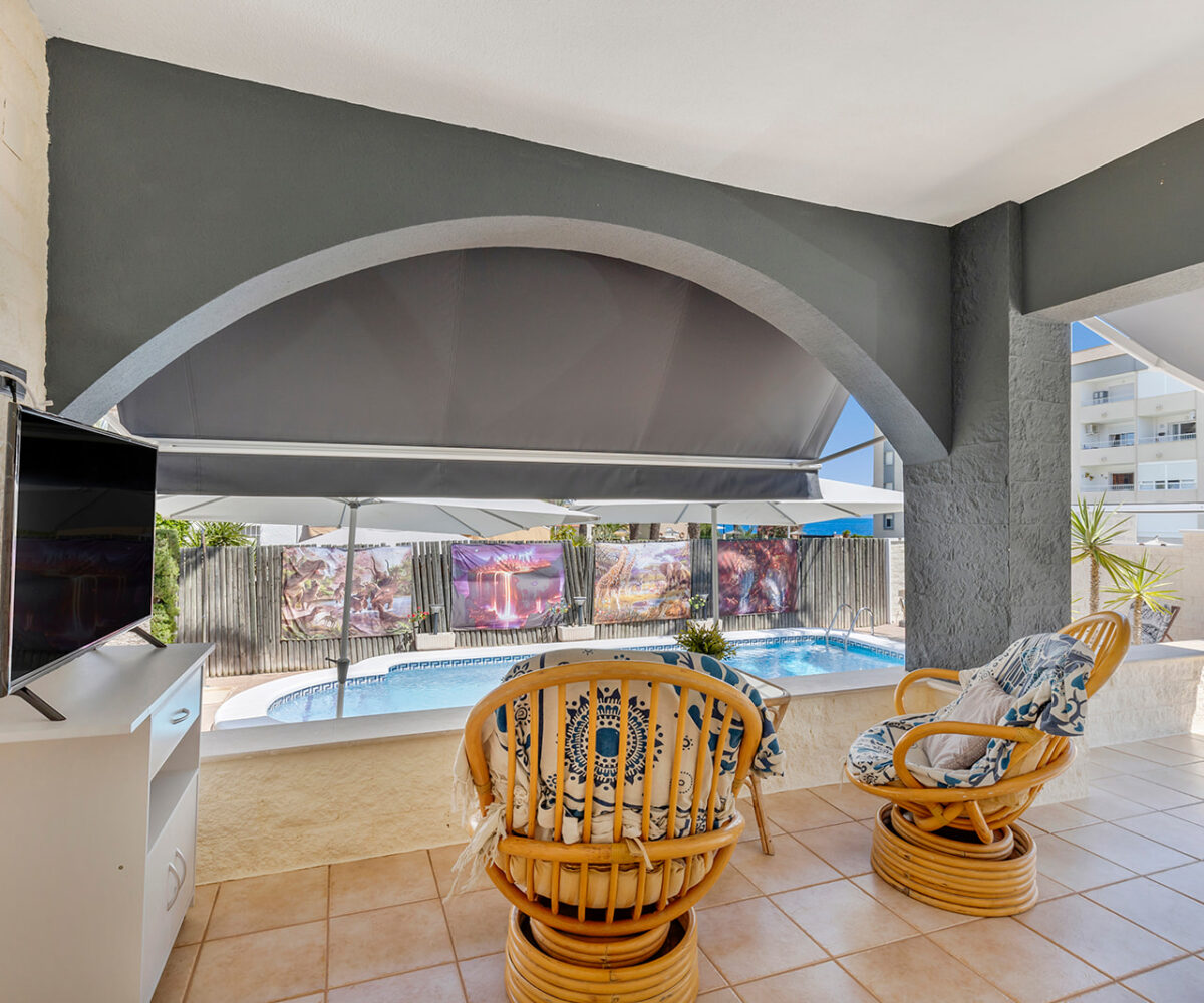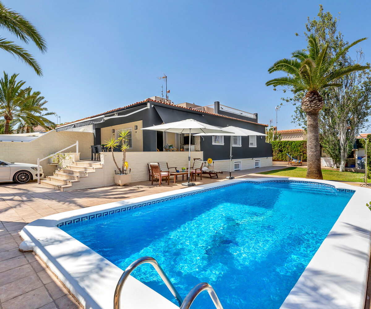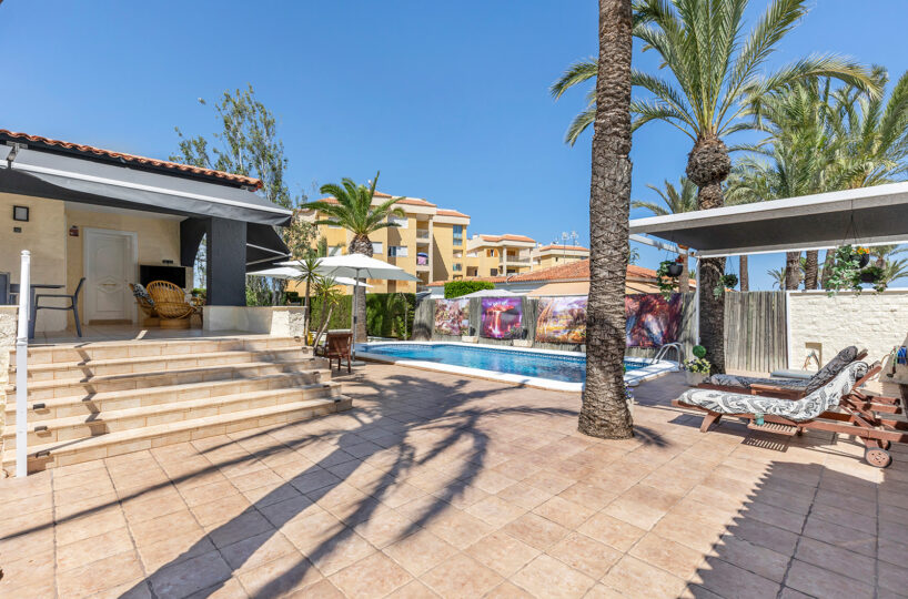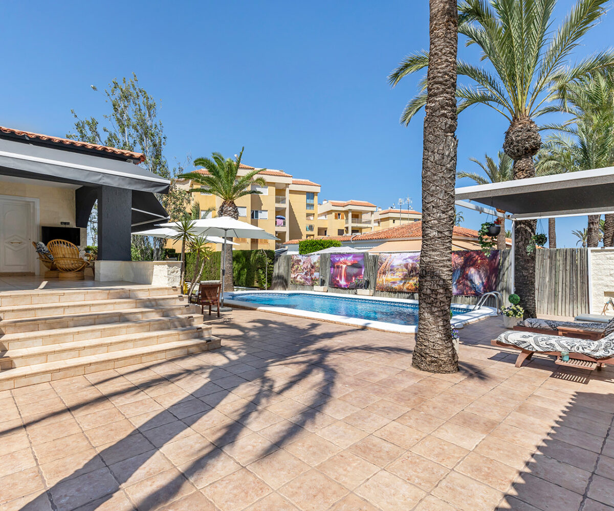 Во дворе расположен великолепный частный бассейн, идеально подходящий для отдыха и наслаждения средиземноморским климатом круглый год, а также просторные террасы и ухоженный сад для приятного времяпрепровождения с семьёй и друзьями.