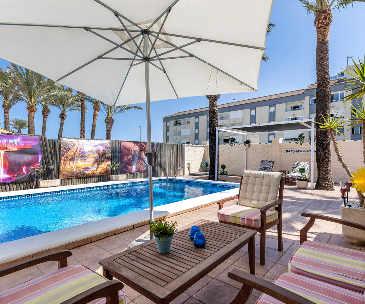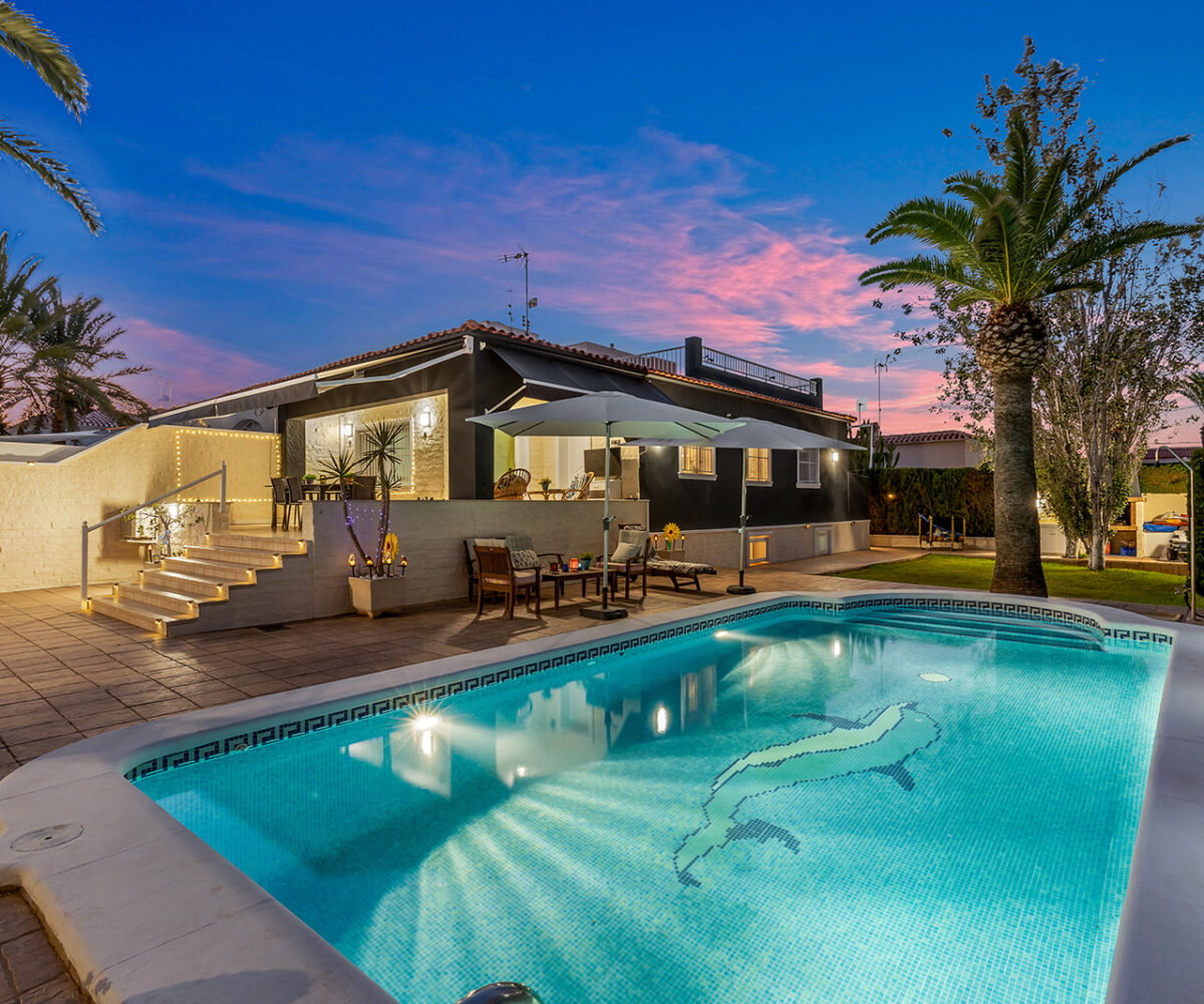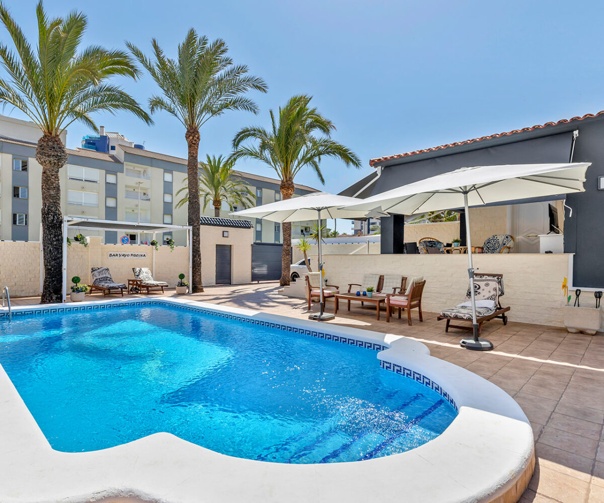 Во дворе расположен великолепный частный бассейн, идеально подходящий для отдыха и наслаждения средиземноморским климатом круглый год, а также просторные террасы и ухоженный сад для приятного времяпрепровождения с семьёй и друзьями.