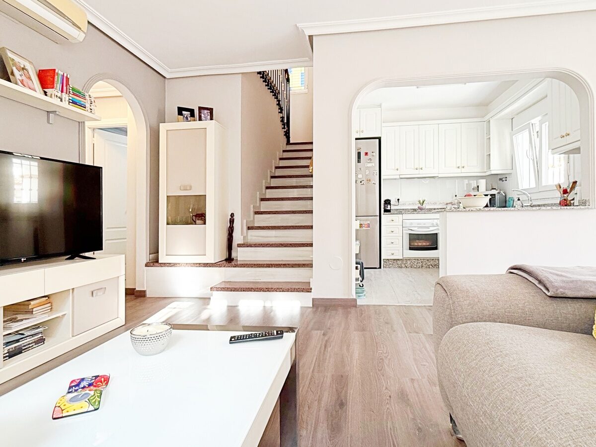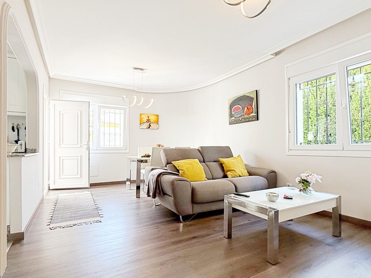 This magnificent detached villa of 105 m², fully renovated and distributed over two floors, is located in a private residential complex with a communal swimming pool, just a short distance from the beach.