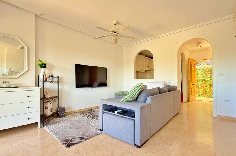 Esta vivienda adosada en Lomas de Campoamor destaca por su orientación suroeste y su excelente aprovechamiento de los espacios exteriores, diseñados para disfrutar del sol de tarde y los atardeceres. Con 83 m² de vivienda, ofrece una distribución funcional de 2 dormitorios y 2 baños, encontrándose en buen estado de conservación y equipada con aire acondicionado.