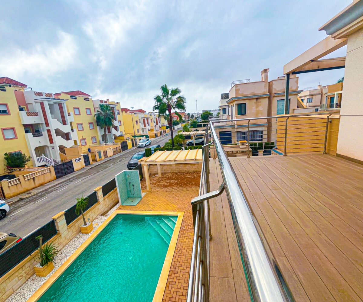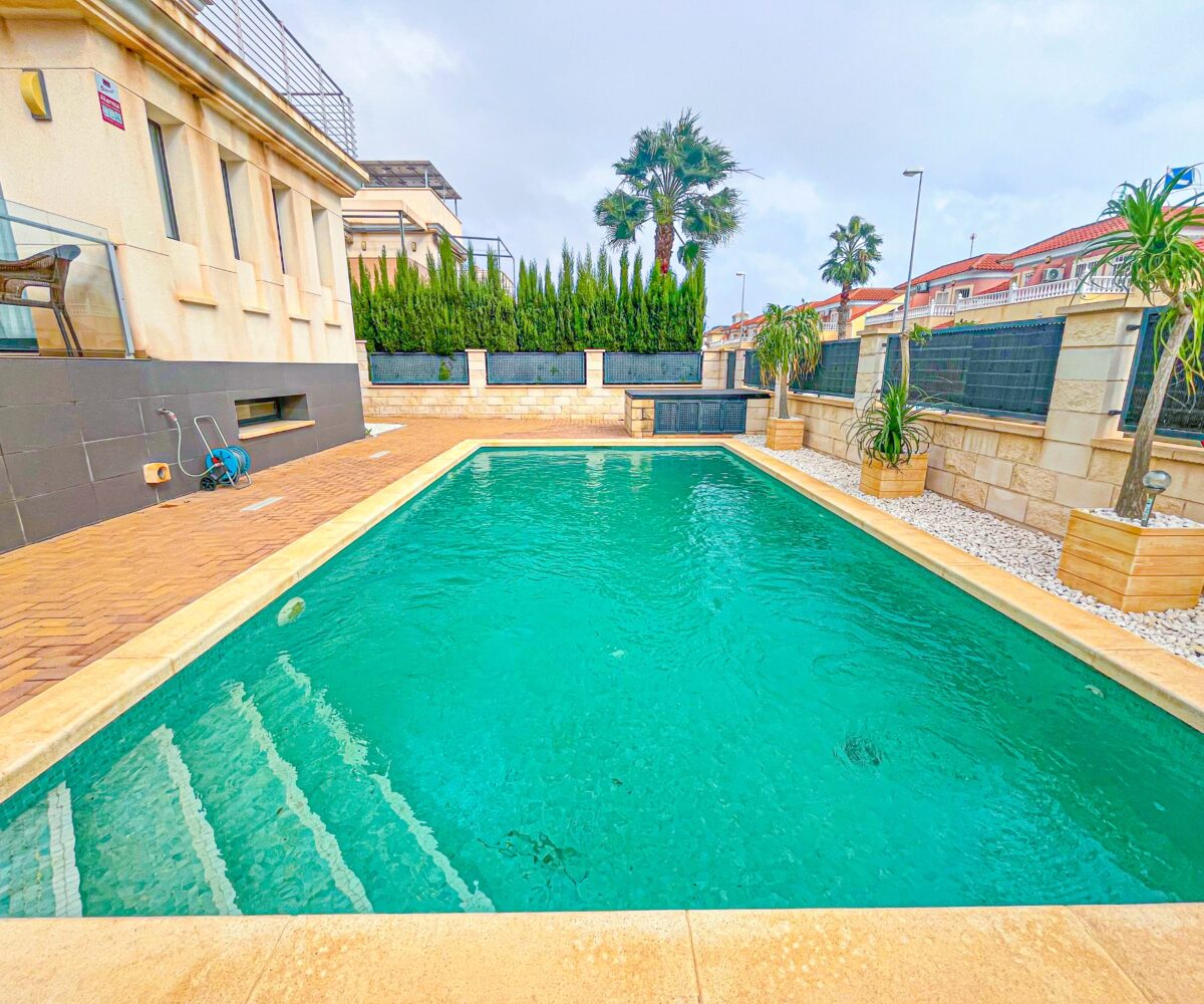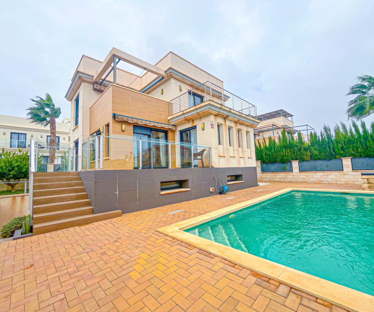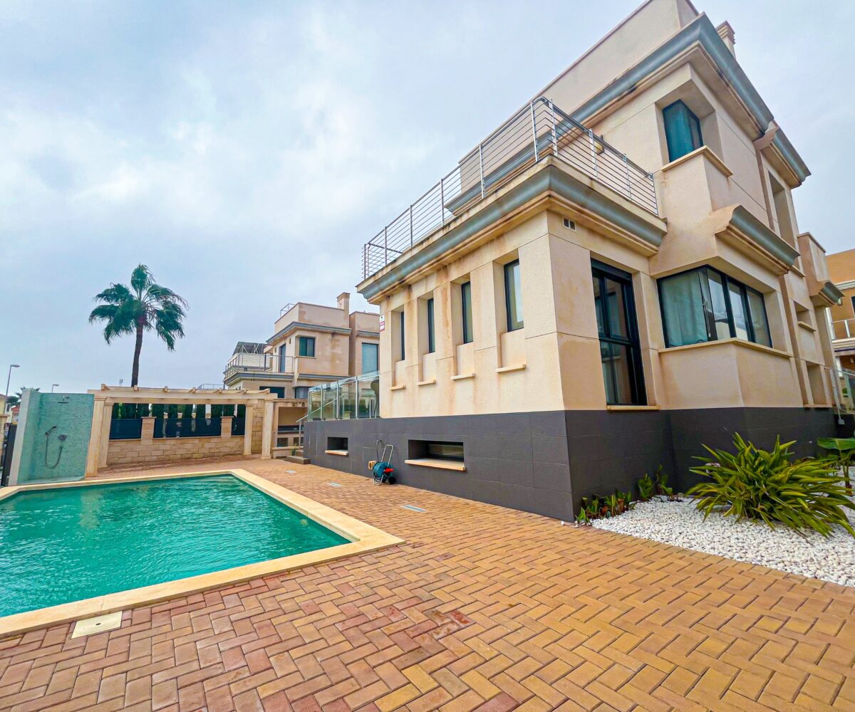 Espectacular villa con 450m2 de parcela en Punta Prima, Orihuela Costa. La vivienda tiene 4 habitaciones, 2 baños, y un aseo en la zona de la piscina. También cuenta con una amplia terraza de 21m2 y una piscina privada. Esta villa construida con materiales de alta calidad y ubicada en una zona exclusiva de Orihuela […]