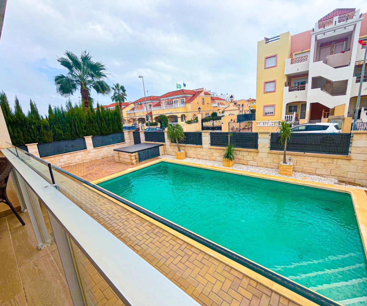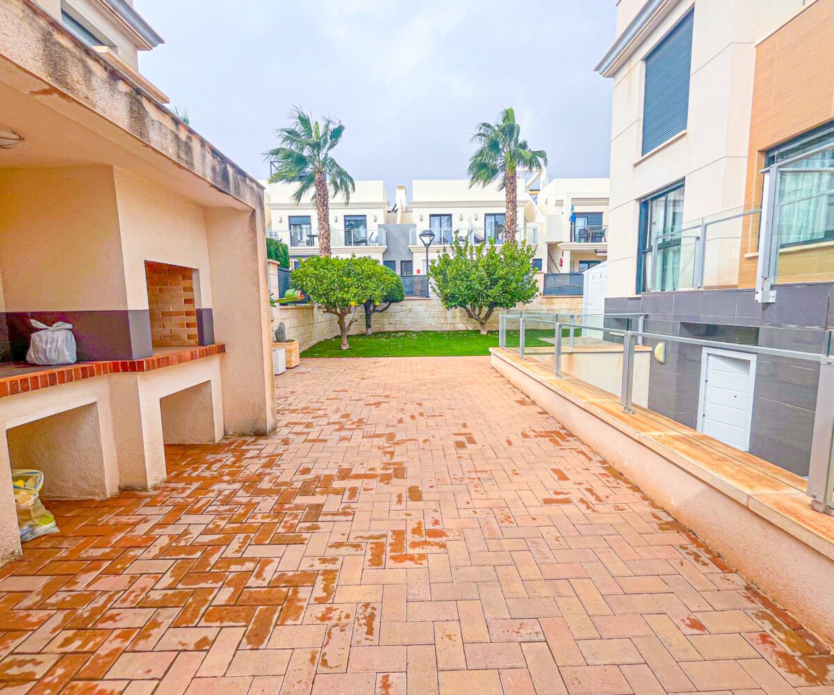 3rd floor apartment in La Recoleta, Punta Prima. Nice apartment with 2 bedrooms and 2 bathrooms (one of them en-suite). The apartment has a living-dining room, open plan kitchen. It has a west facing terrace with views to the communal areas. It also has a parking space and storage room. Apartment located in a residential […]