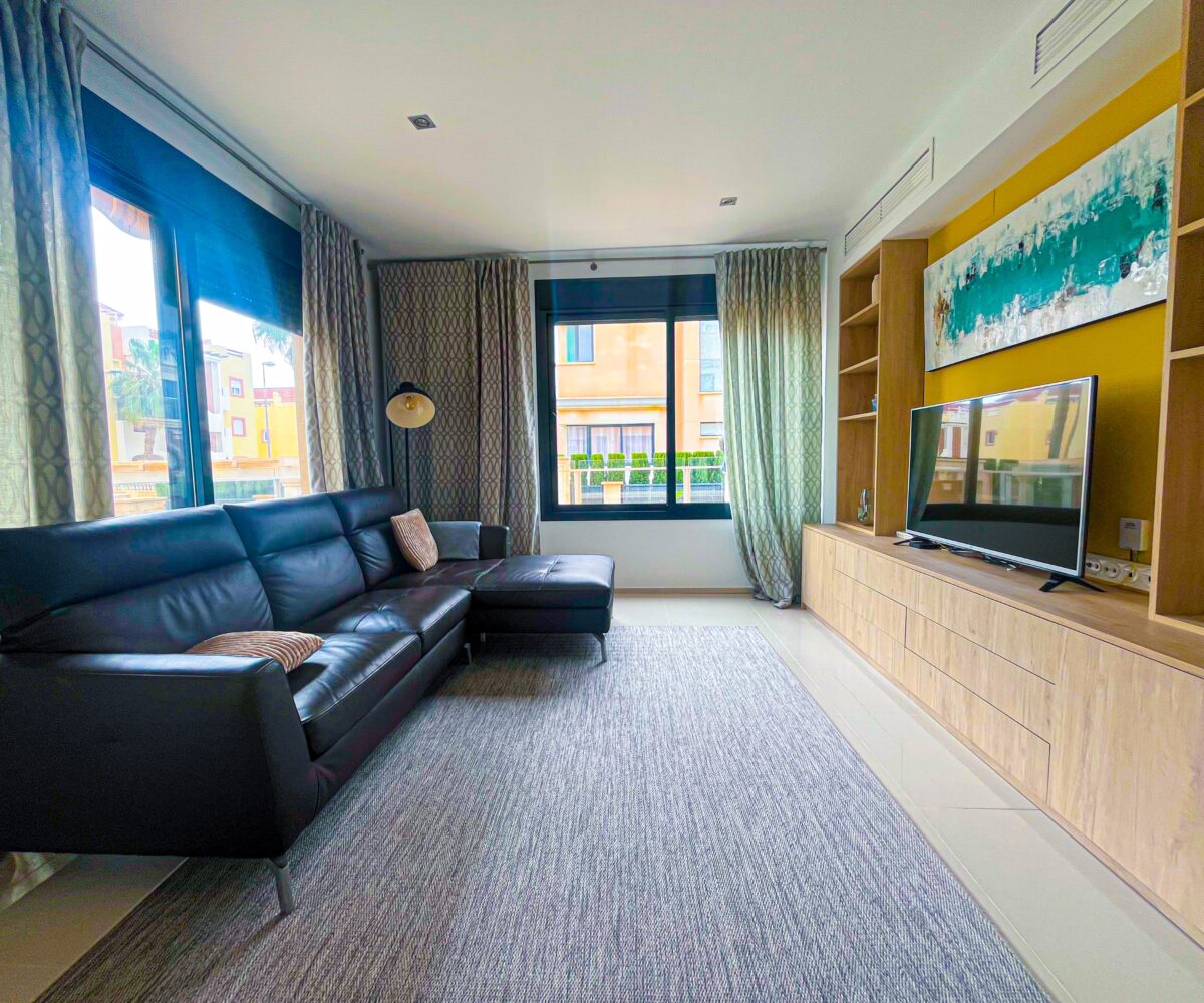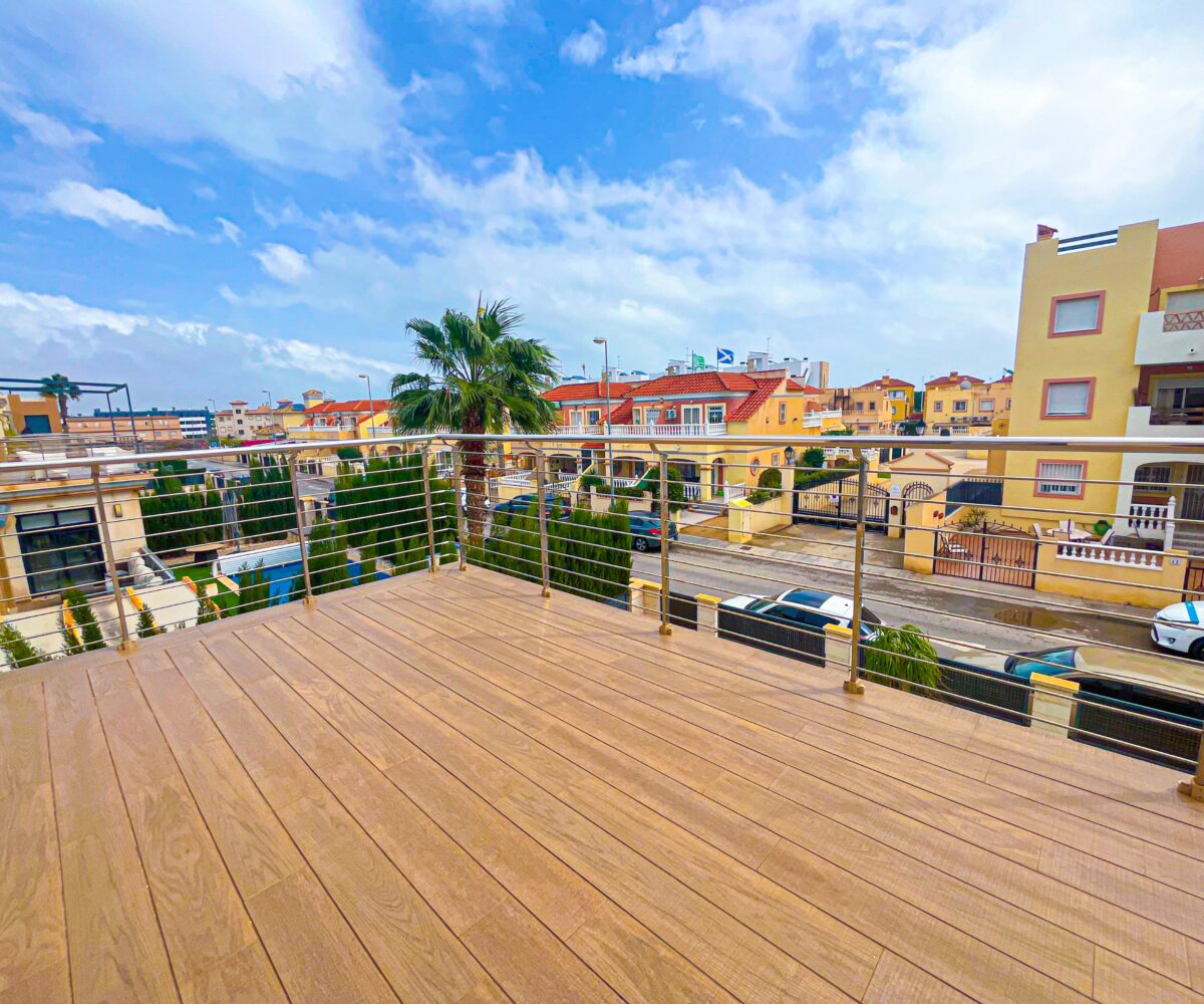 Beautiful penthouse with 3 terraces in the exclusive residential area of La Recoleta, Punta Prima. The property is distributed in a spacious living-dining room, open plan kitchen, 2 bedrooms and 2 bathrooms (1 of them en-suite). The flat also has 2 solariums of 55m2 each one with south and north orientation and a terrace of […]